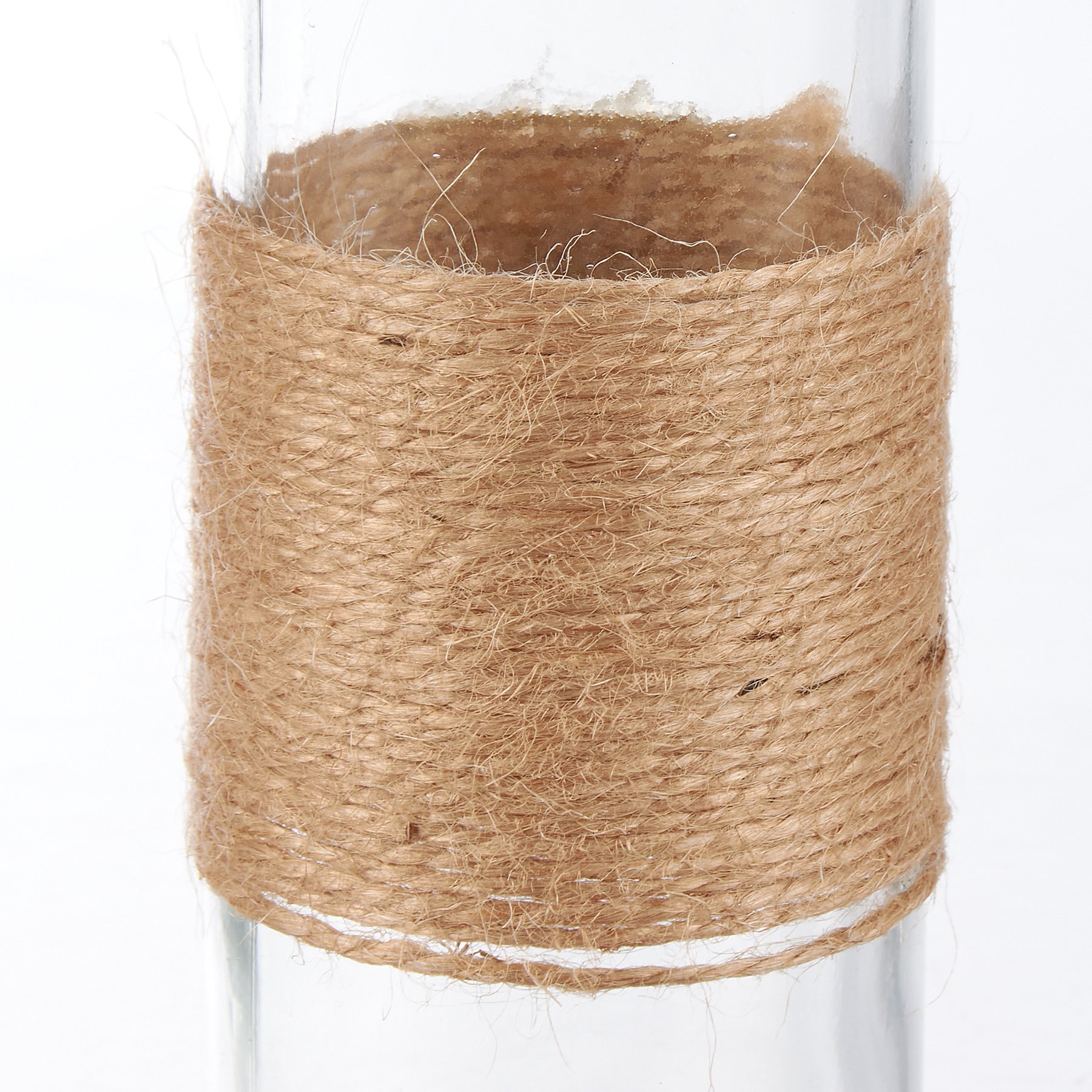 A glass vase set from our Beach Collection including two vases featuring jute wrapped around each for added interest. Our Wrapped Apothecary vase set complements well with coordinating pieces in collection for a rustic beach-themed display. Greenery pictured not included.