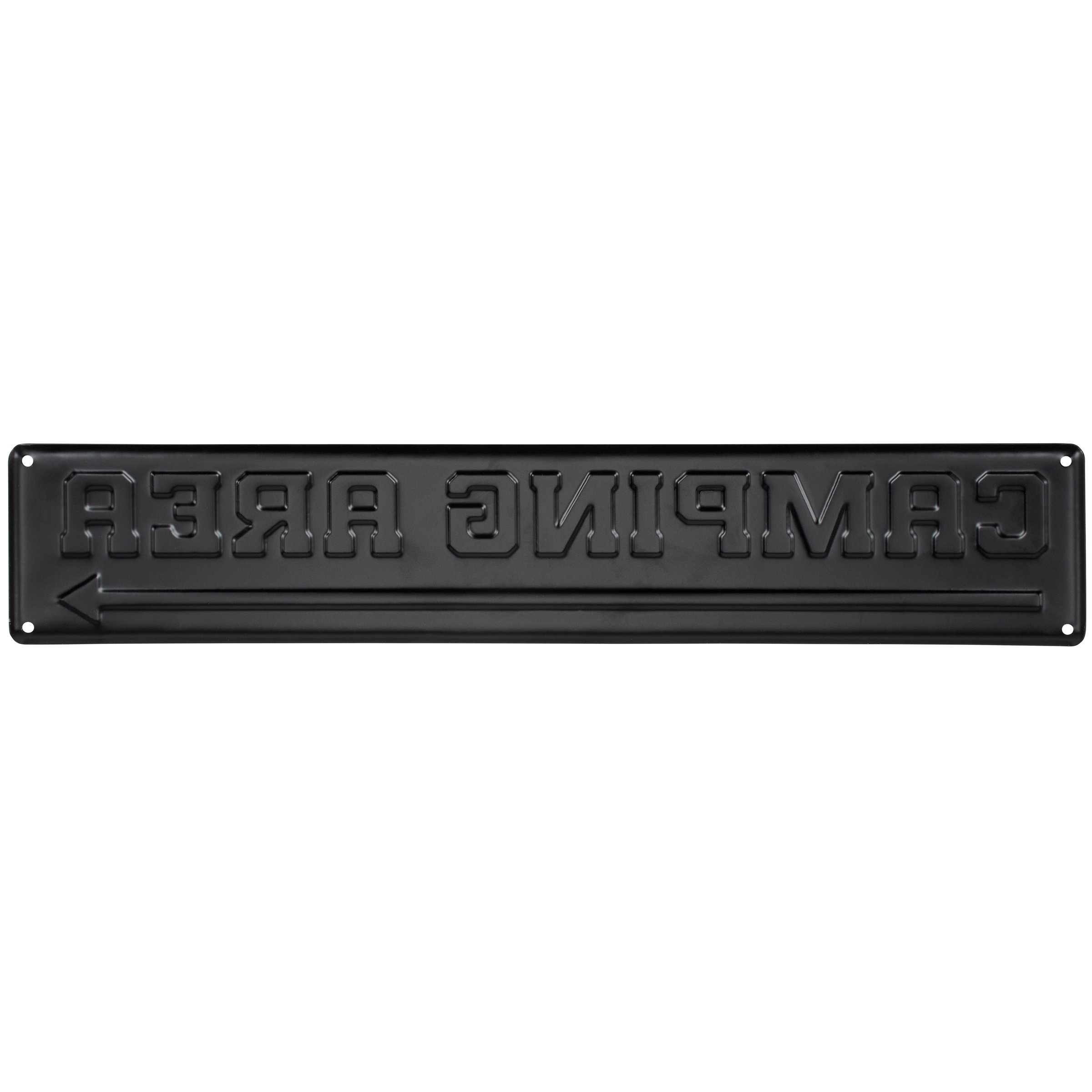 A metal wall décor piece from our Lake & Cabin Collection featuring a rustic camp sign design displaying a "Camping Area" sentiment and arrow graphic underneath. Camp sign design features embossed details and a rust finish for an aged appearance. Our Camping Area metal wall décor is easy to hang against wall using the included mounting hardware and pre-drilled holes in each corner. A rustic camping themed home accent that coordinates well with cabin decor.