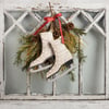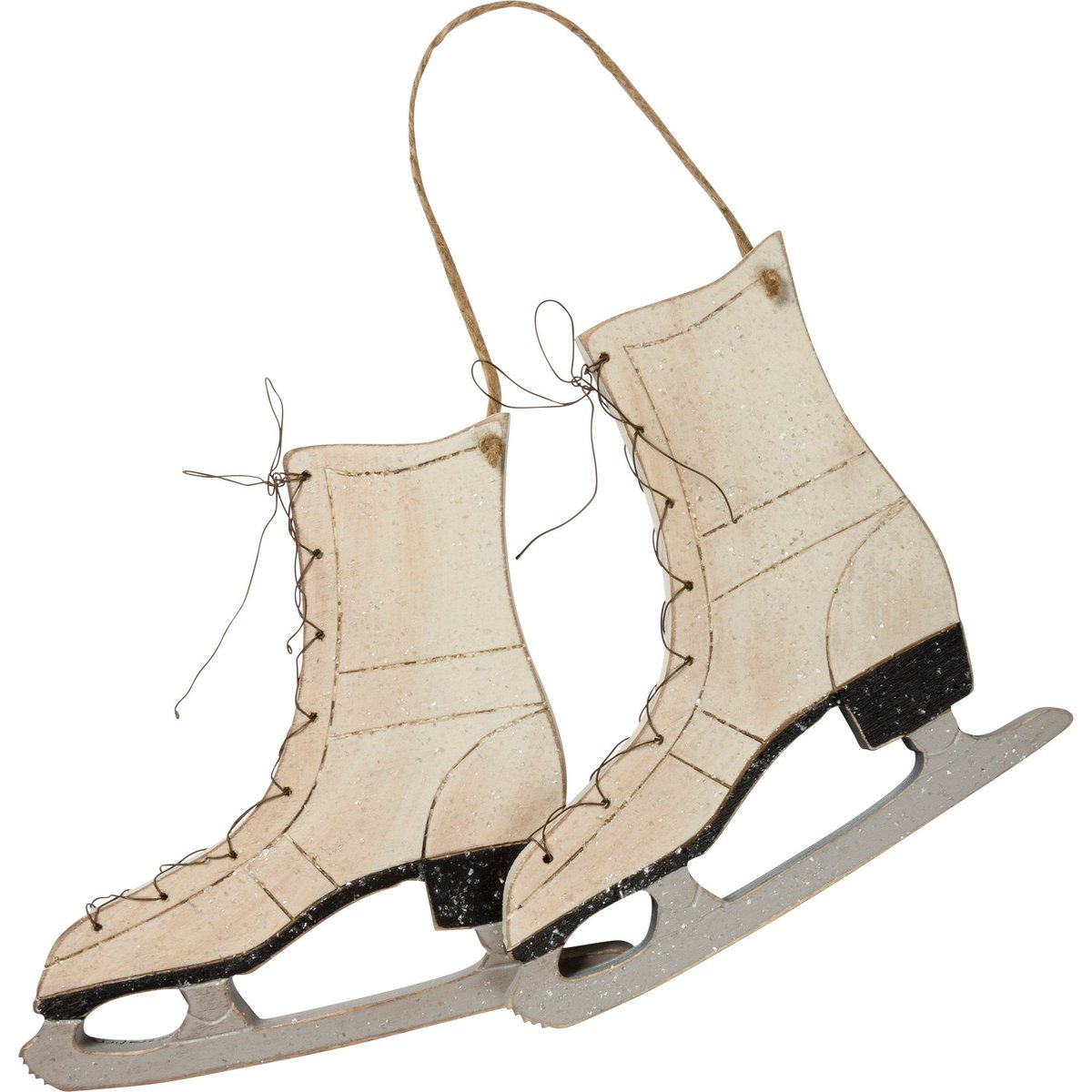 Recreated from hand-carved original pieces, this wooden wall decor piece features ice skates with snowflake accents for a charming display. Contains a top jute rope loop for easy hanging or attaching to a wreath. Complements well with existing decor or coordinating styles for a cohesive collection.