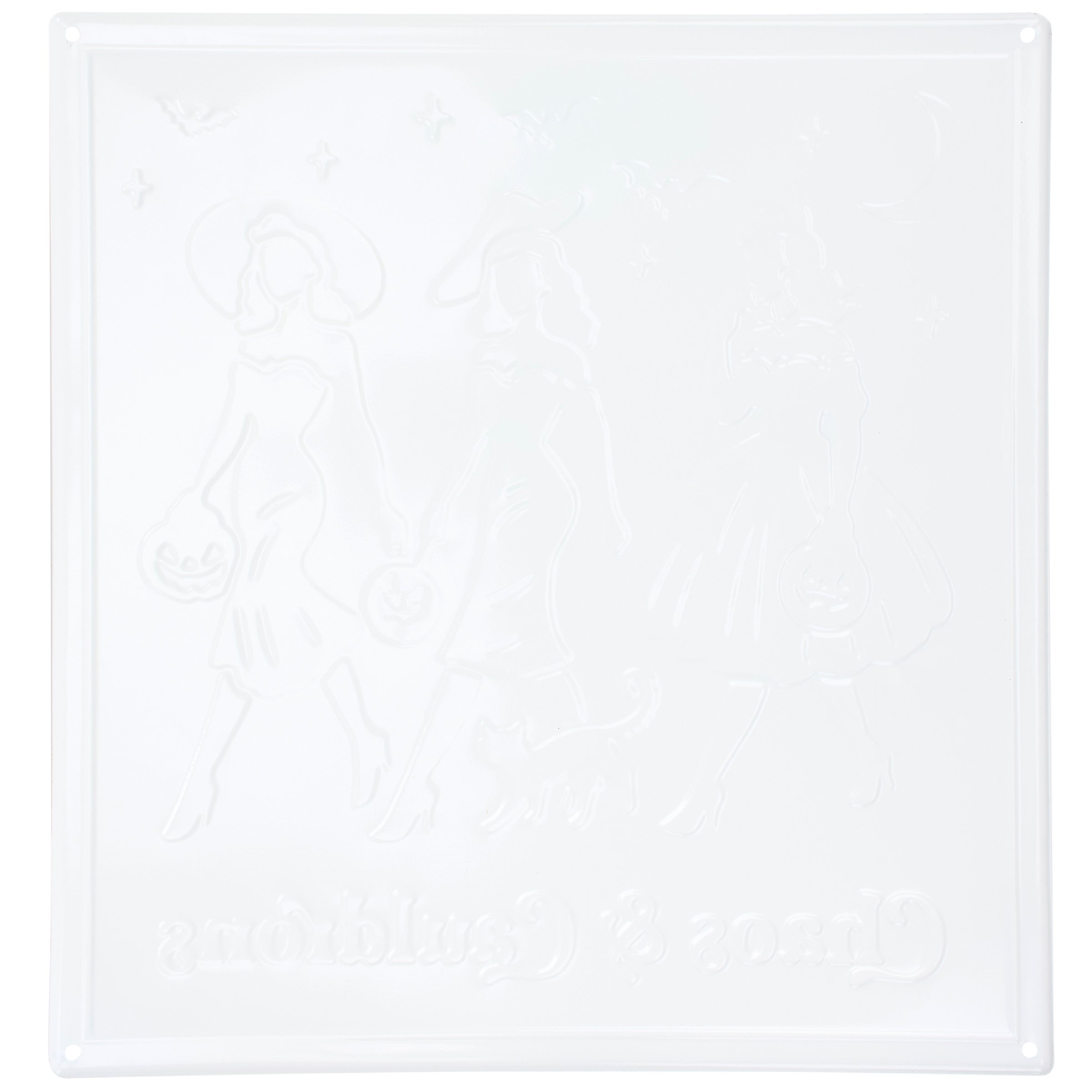 A metal wall décor piece from our Halloween Collection displaying a group of witches in a retro style with a fun witch inspired sentiment that reads "Chaos & Cauldrons." Witchy sign features embossed details for added dimension. Our Chaos & Cauldrons metal wall décor is ready to hang against wall using the included mounting hardware and pre-drilled holes in each corner. A Halloween home accent perfect for seasonal displays or for everyday witch themed decor.
