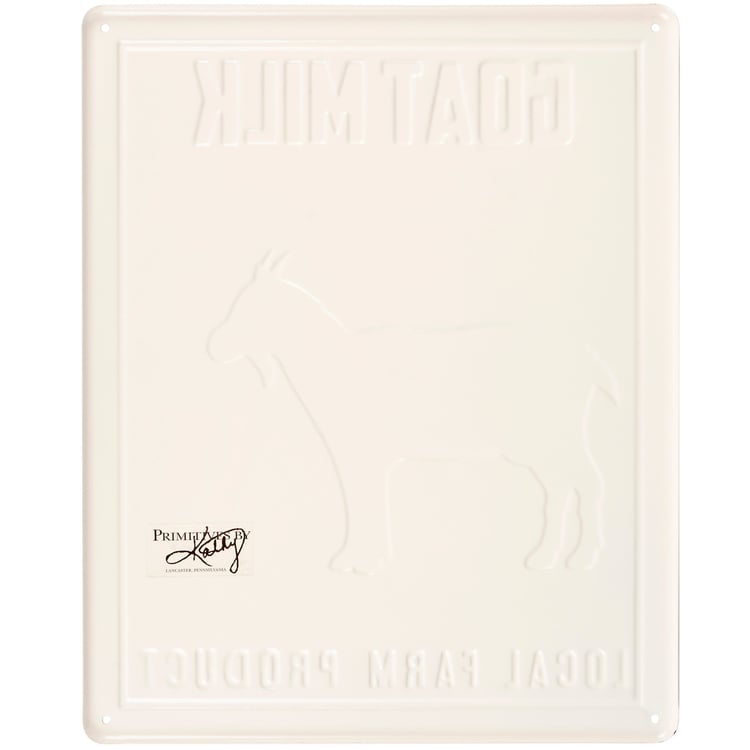 A metal wall décor piece from our Homestead Collection displaying a rustic local farm inspired design of a goat and milk canister with a farm-themed sentiment that reads "Goat Milk 100% Natural Fresh Daily - Ecologically Clean - Local Farm Product." Farm sign design features embossed details and a rust finish for an aged appearance. Our Goat Milk metal wall décor is easy to hang against wall using the included mounting hardware and pre-drilled holes in each corner. A rustic farm-themed home accent perfect for everyday display.