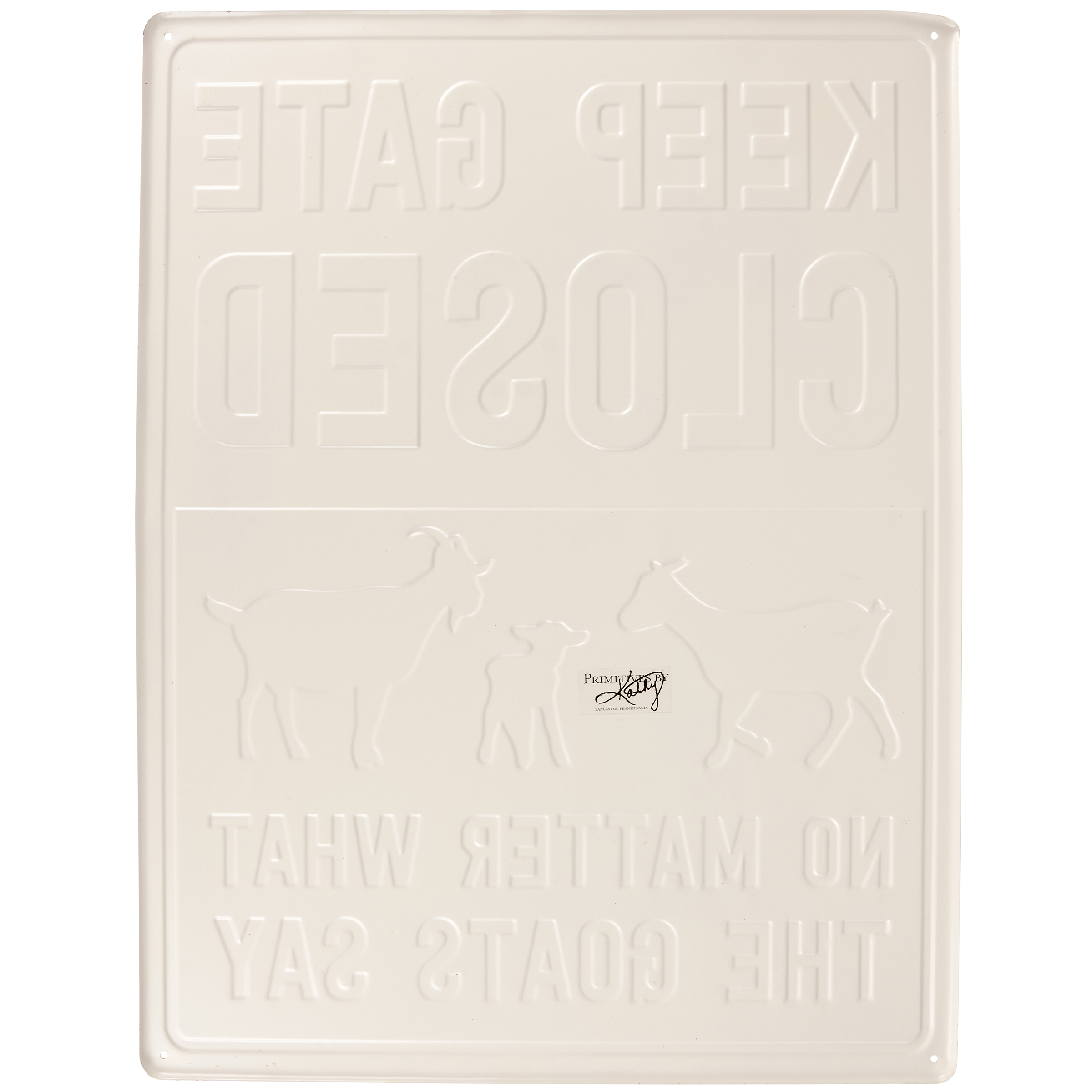 A metal wall décor piece from our Homestead Collection displaying goat silhouettes with a fun farm inspired sentiment that reads "Keep Gate Closed - No Matter What The Goats Say." Farm sign design features embossed details and a rust finish for an aged appearance. Our Keep Gate Closed metal wall décor is easy to hang against wall using the included mounting hardware and pre-drilled holes in each corner. A rustic farm-themed home accent perfect for everyday display.