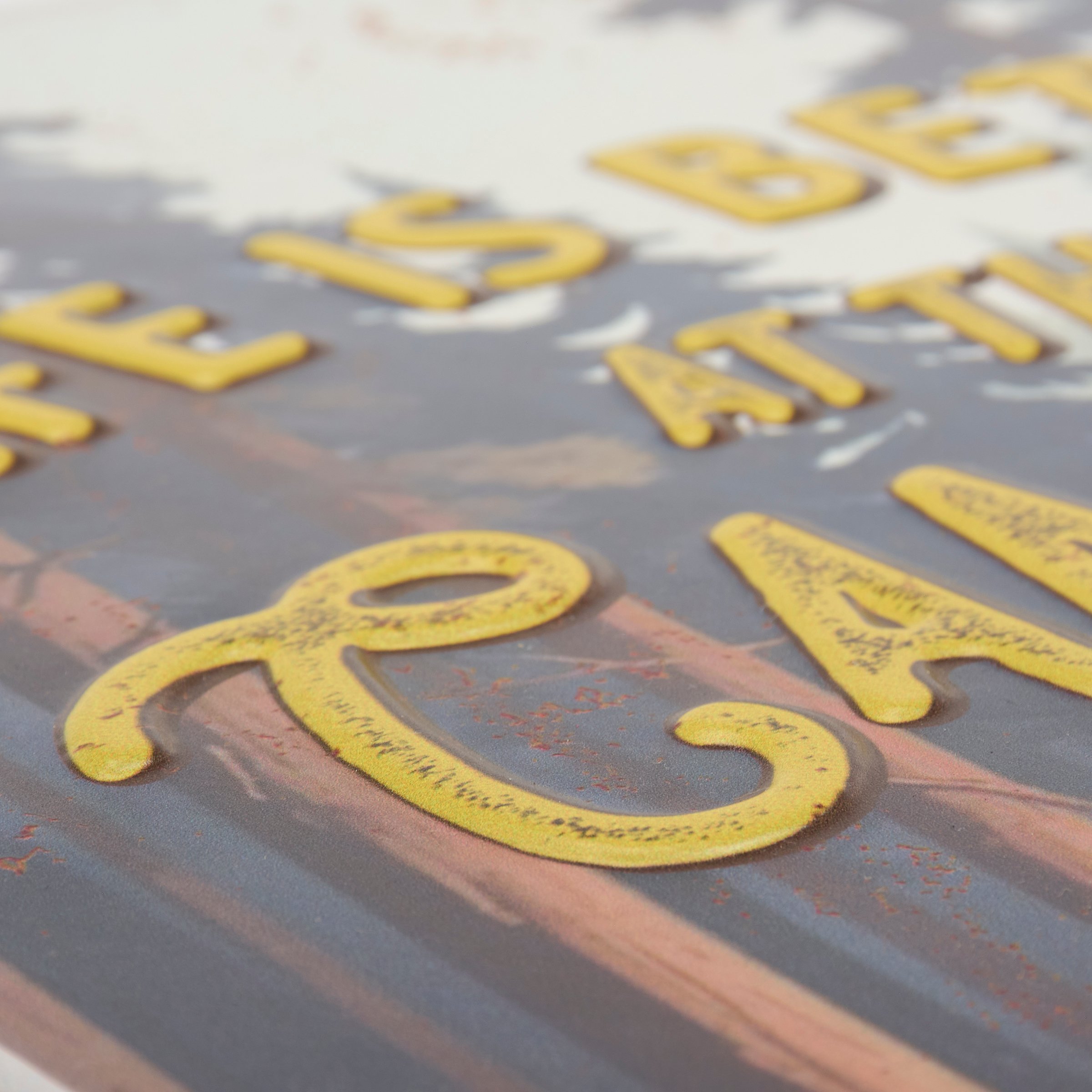 A metal wall décor piece from our Lake & Cabin Collection displaying a cozy campfire scene with a camping inspired sentiment that reads "Life Is Better At The Campfire." Camp sign design features embossed details and a rust finish for an aged appearance. Our Better At The Campfire metal wall décor is easy to hang against wall using the included mounting hardware and pre-drilled holes in each corner. A rustic camping themed home accent that coordinates well with cabin decor.