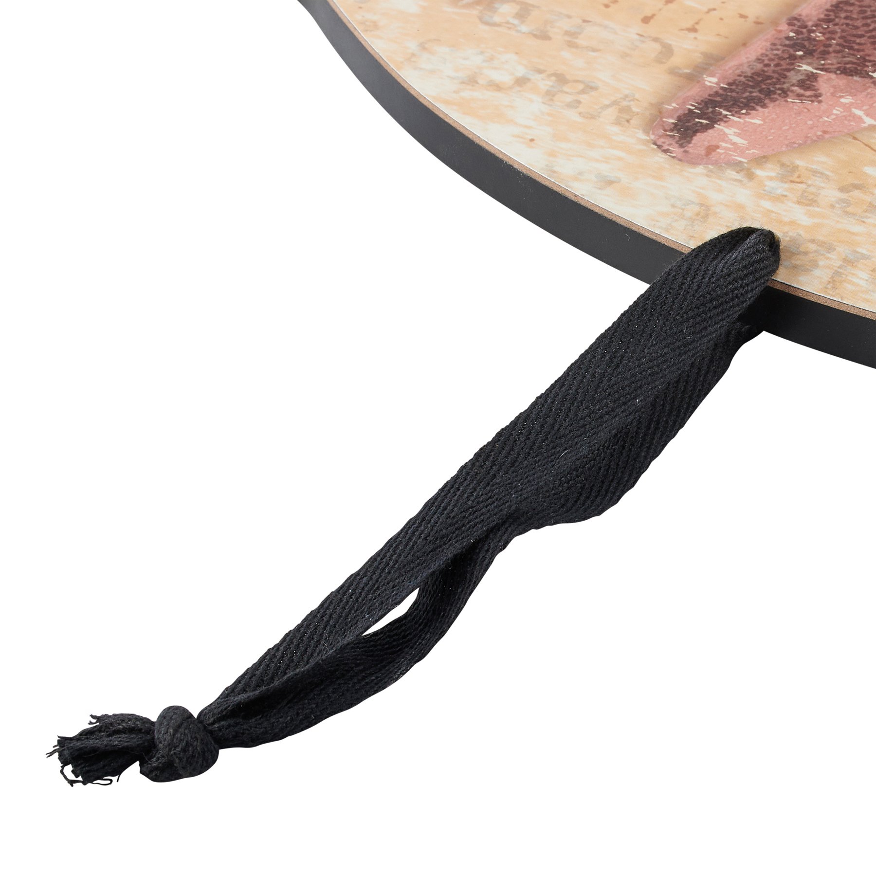 A wooden wall décor piece from our Halloween Collection featuring a circle cutout with vintage art of a witch on a broom and owl flying in front of a full moon. Design features coordinating black color on the sides and back. Our Midnight Flying Witch wall décor is easy to hang via attached black cotton tape hanger. A rustic seasonal home accent.