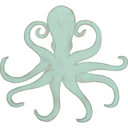 This distressed wooden cutout from our Beach Collection features a sea foam green octopus. Complements well with other pieces in collection. This Octopus wall decor would make the perfect statement piece to incorporate into a beachy display.