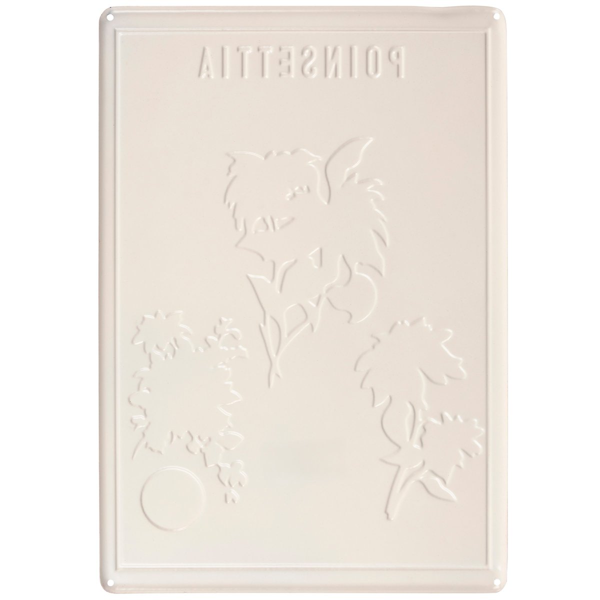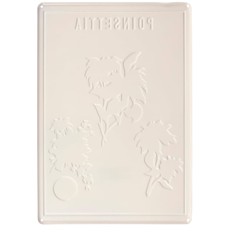 A metal wall décor piece from our Christmas Collection displaying vintage plant study inspired art of poinsettias with embossed details and a rust finish for an aged appearance. Our Poinsettia metal wall décor is easy to hang against wall using the included mounting hardware and pre-drilled holes in each corner. A vintage Christmas home accent perfect for seasonal display.