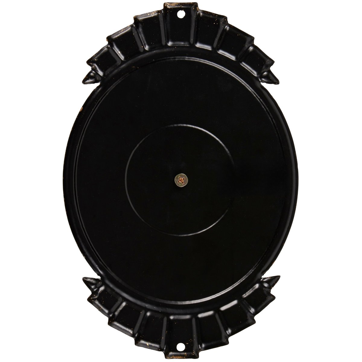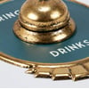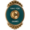 A metal wall décor piece from our Art Deco Collection displaying an art deco inspired design with a functional bell in the middle of a sentiment that reads "Ring For Drinks." Metal sign features embossed details and metallic gold accents. Our Ring For Drinks metal wall décor is easy to hang for display via pre-drilled holes at the top and bottom. A vintage alcohol-themed home accent perfect for a home bar.