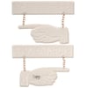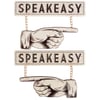 A set of metal wall décor pieces from our Art Deco Collection displaying speakeasy sign inspired designs on each with finger pointing hands hanging on chains in opposite directions. Speakeasy sign designs feature embossed details and a rust finish for an aged appearance. Our Speakeasy metal wall décor set is easy to hang against wall using the included mounting hardware and pre-drilled holes in top corners. A set of rustic bar-themed home accents perfect for everyday display.