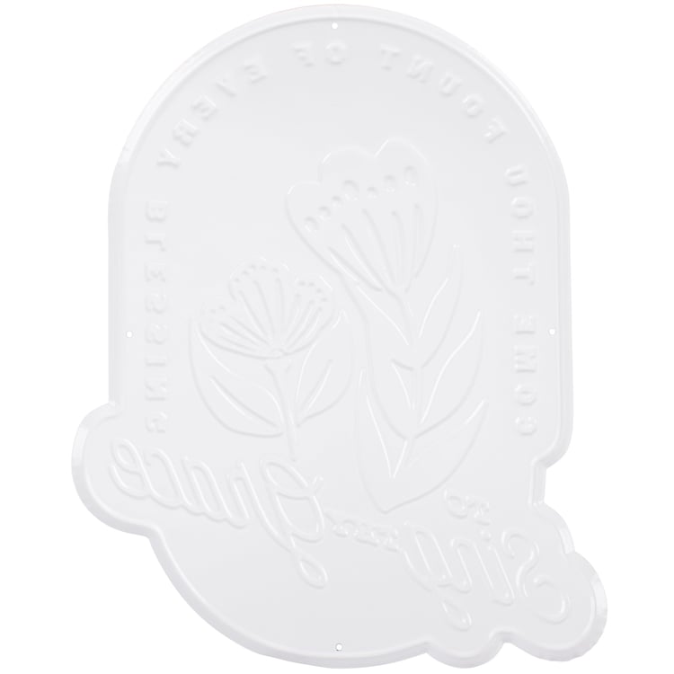 A metal wall décor piece from our Faith Collection displaying a beautiful pink flower design surrounded by a faith inspired sentiment that reads "Come Thou Fount Of Every Blessing - Tune My Heart To Sing Thy Grace." Faith sign features embossed details for added dimension. Our To Sing Thy Grace metal wall décor is easy to hang against wall using the included mounting hardware and pre-drilled holes in the top, bottom, and sides. A faith-themed home accent perfect for everyday display.