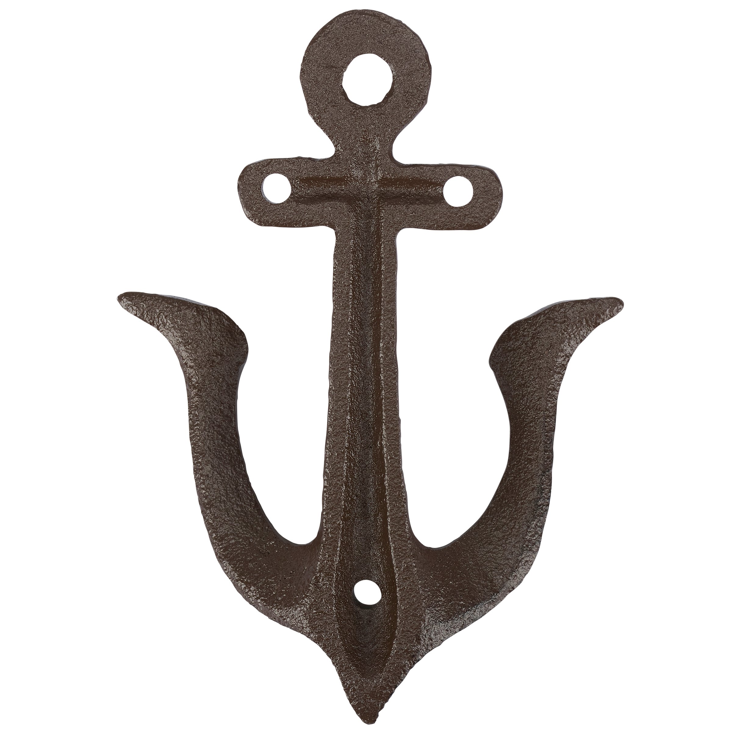 A metal wall hook from our Beach Collection displaying a rustic design inspired by beach décor. This sturdy wall hook features a sculpted anchor design with antique finish and angled anchor arms to create hooks for hanging accessories or clothing on the wall. Our Anchor wall hook is easy to hang for display and use via predrilled holes. A rustic home accent that adds functional style to any space.