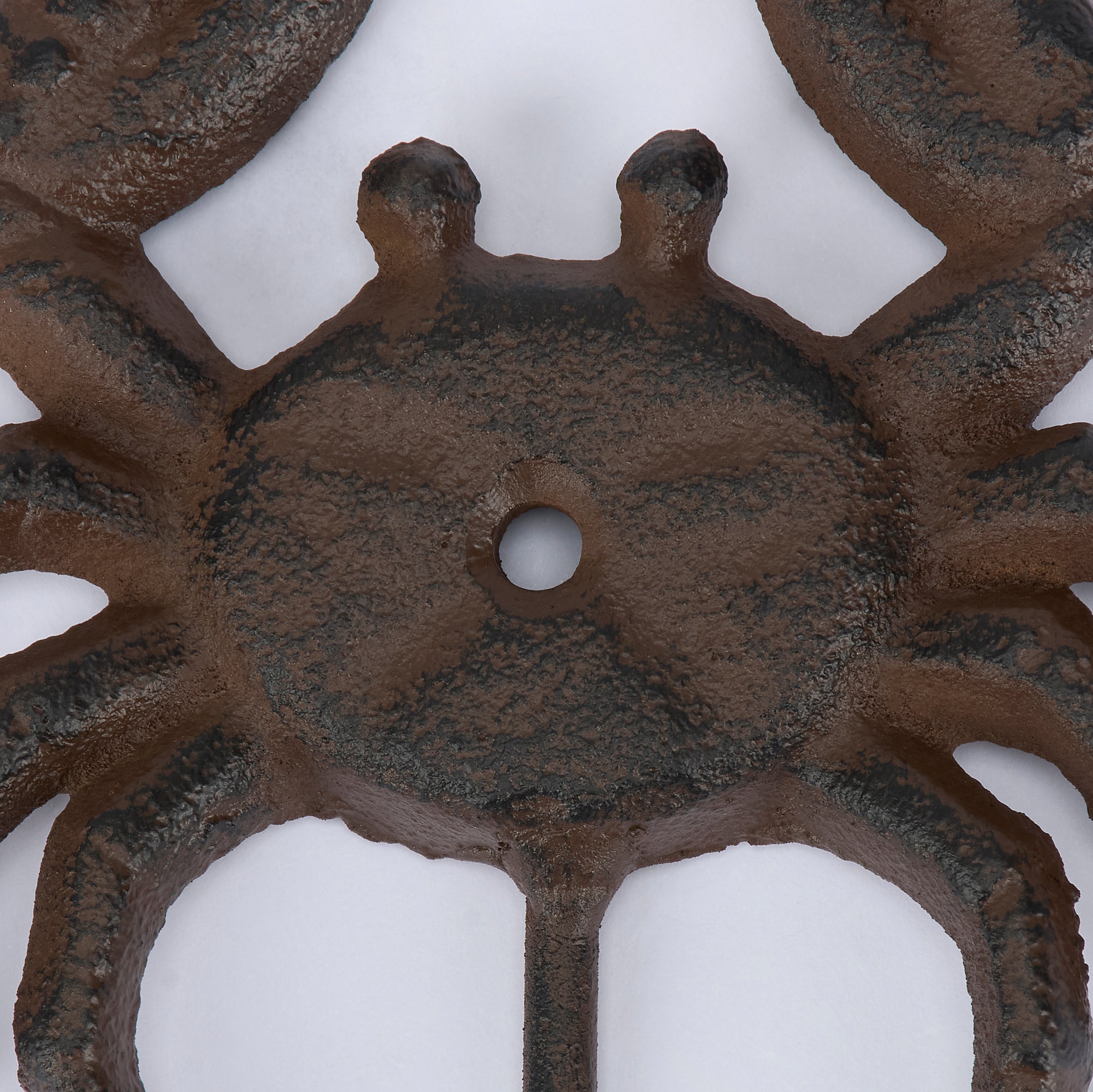 A metal wall hook from our Beach Collection displaying a rustic design inspired by beach décor. This sturdy wall hook features a sculpted crab design with antique finish and hook at the bottom for hanging accessories or clothing on the wall. Our Crab wall hook is easy to hang for display and use via predrilled holes. A rustic home accent that adds functional style to any space.
