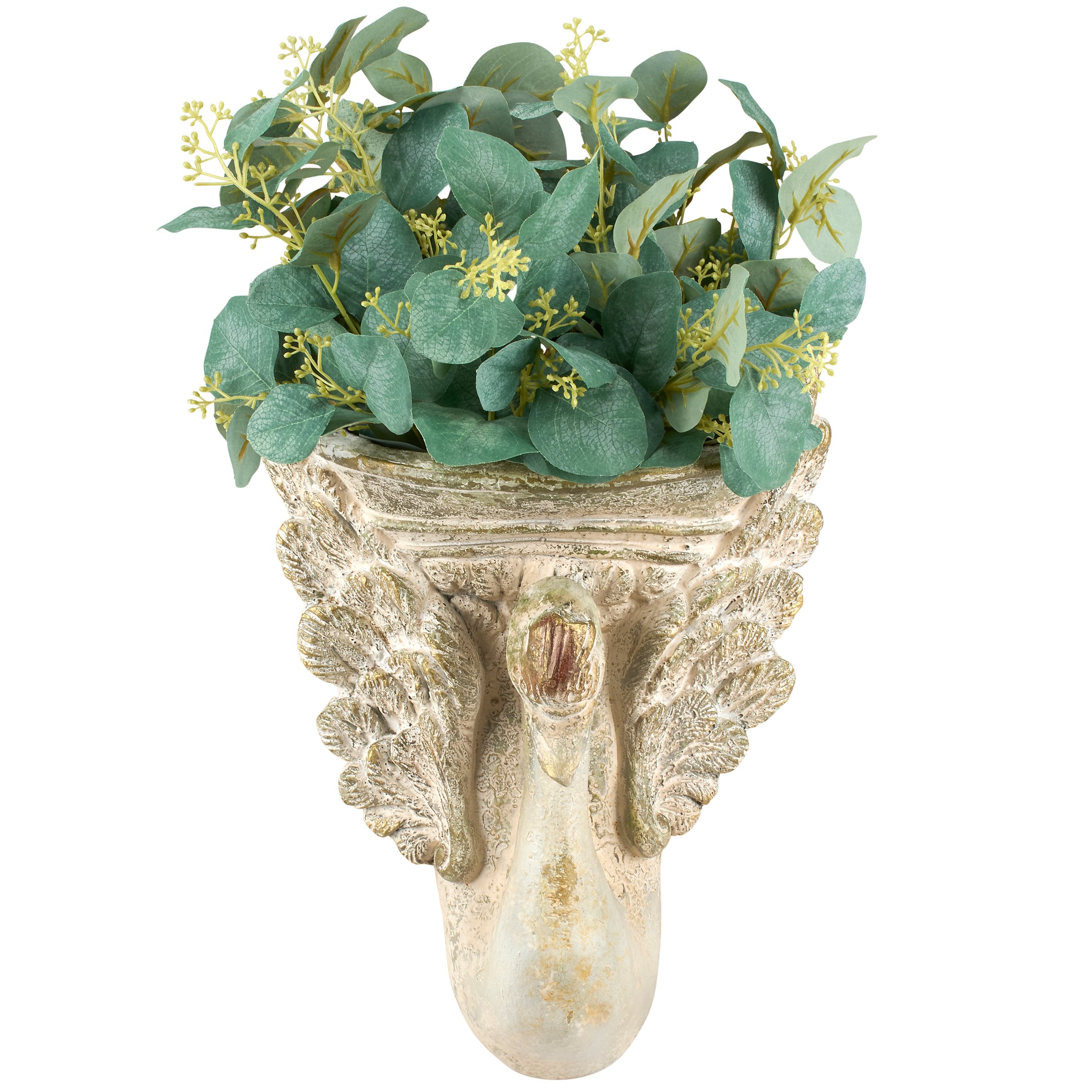 A wall vase from our Art Nouveau Collection displaying an elegant sculpted swan design with metallic finish and distressed details for aged appearance. Swan planter features a flat back to hang against wall and a hole on the top to place greenery or décor. Greenery pictured not included. Our Swan wall vase is ready to hang for display via keyhole slots on the back. A nature themed home accent perfect for adding vintage style to home decor displays.