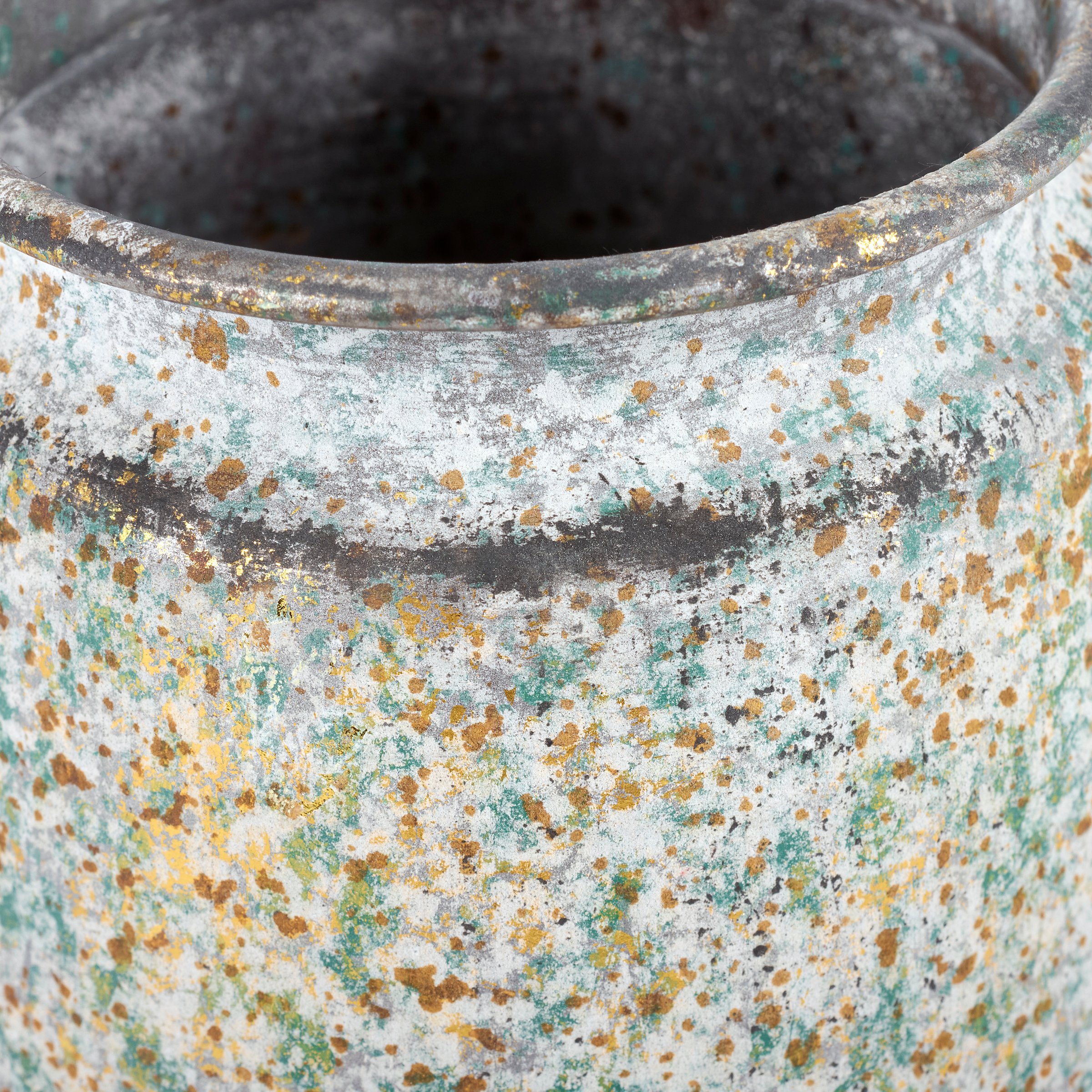 A metal watering can from our Cottage Charm Collection displaying a rustic speckled finish. Rustic watering can features a hole on the top to place greenery or décor. Greenery pictured not included. Our Rustic Speckled watering can is a rustic plant accessory that coordinates well with cottage decor.