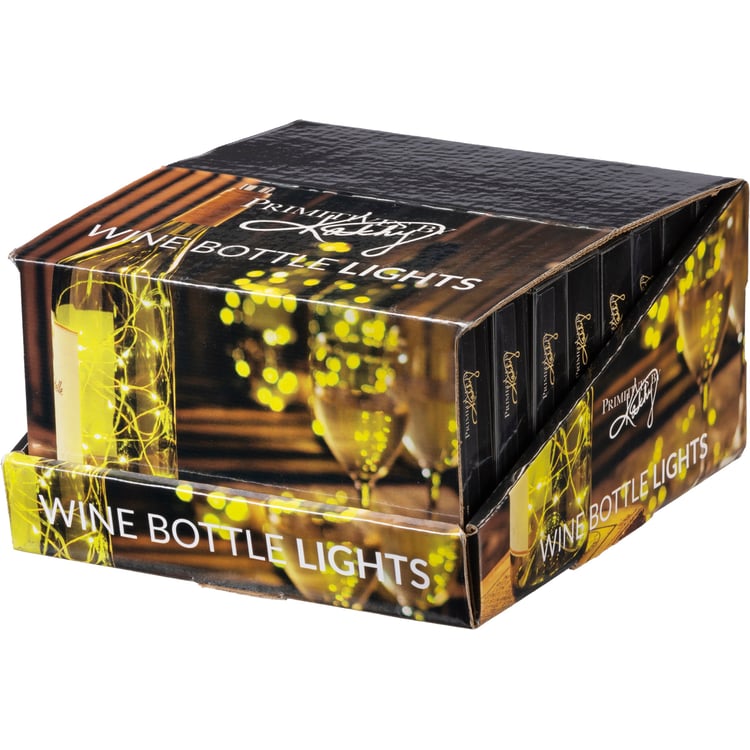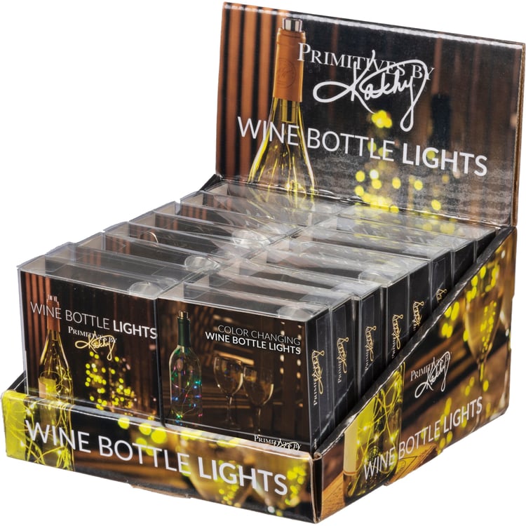 The Wine Bottle Lights Display is made of high-quality cardboard that ships neatly sealed and easily folds open, ready for a countertop display. Opening display reveals 8 warm white LED and 8 color changing Wine Bottle Lights. Display is easy to refill using individual item numbers from included sets or with any of our other styles of Wine Bottle Lights. Not eligible for additional discounting.