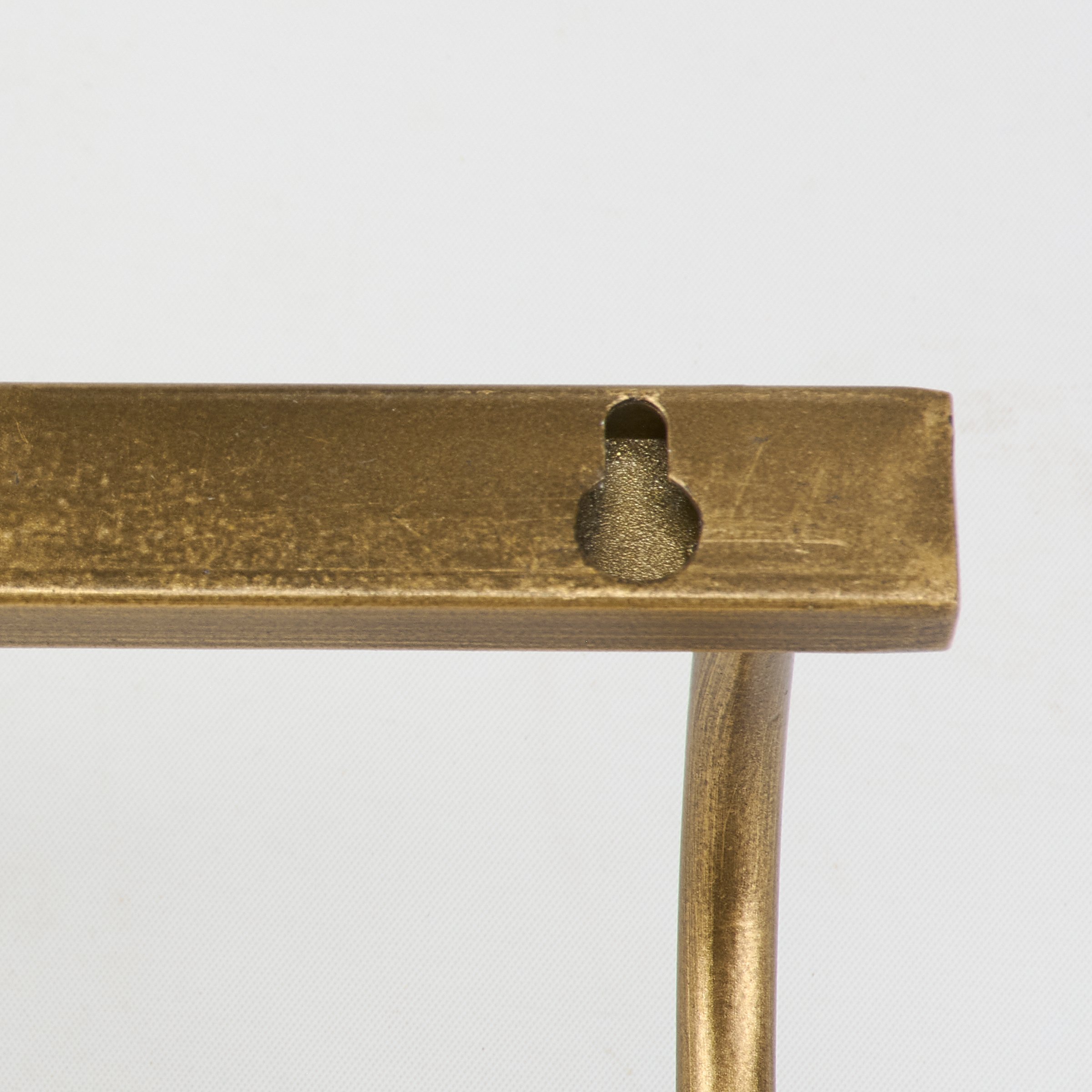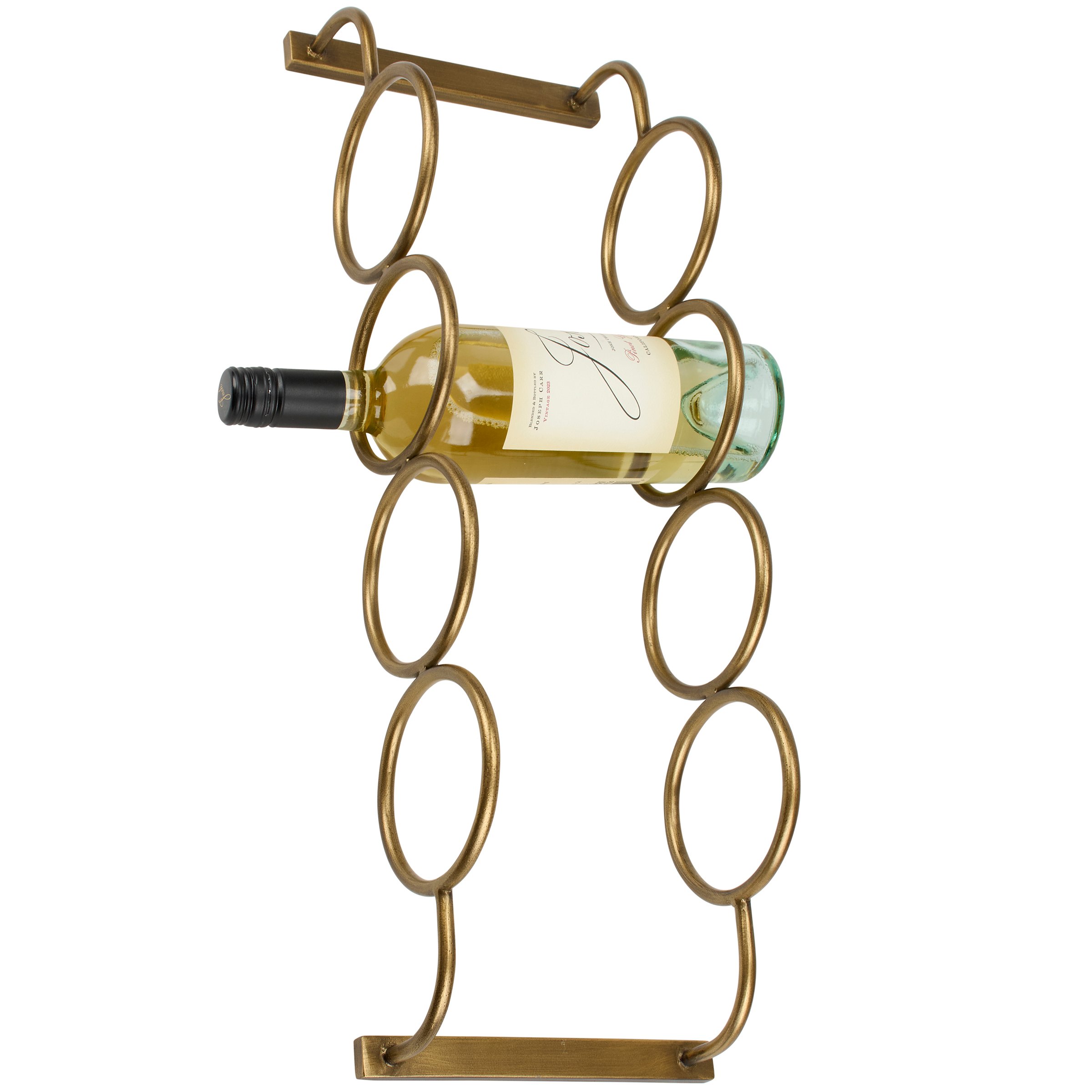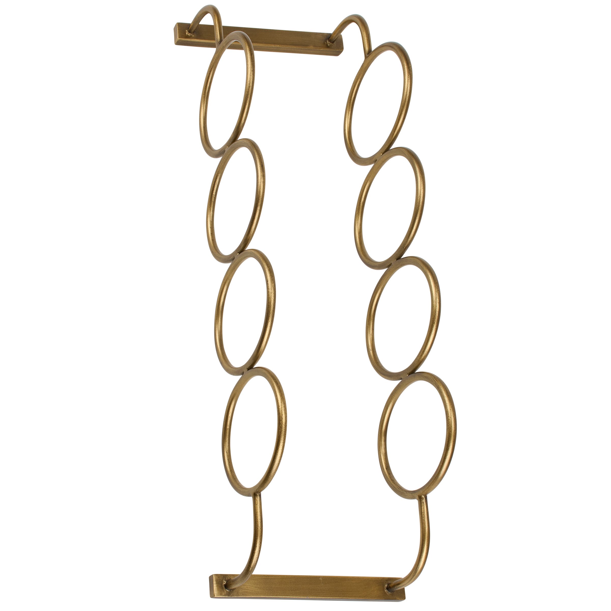 A metal wine rack from our Art Deco Collection featuring an elegant design with metallic finish and 4 sets of rings that fit standard wine bottles. Our Art Deco sine rack is ready to hang for display using the keyhole slots on the back. A vintage home accent that add functional style to bar decor.