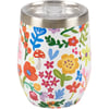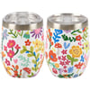 A 12 oz stainless steel wine tumbler from our Inspiration & Blooms Collection displaying a full wrap-around design of vibrant flowers in a unique hand illustrated style. Insulated wine tumbler keeps beverages hot for 4 hours or cold for 8 hours and includes a plastic lid with rubber seal. Our Happy Flowers wine tumbler comes packaged in a kraft paper box great for gifting. Hand-wash only; do not microwave. An inspirational everyday accessory perfect for parties or at home.
