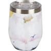 A 12 oz stainless steel wine tumbler from our Inspiration & Blooms Collection displaying a full wrap-around design of a vivid hand illustrated ocean landscape. Insulated wine tumbler keeps beverages hot for 4 hours or cold for 8 hours and includes a plastic lid with rubber seal. Our The Ocean wine tumbler comes packaged in a kraft paper box. Hand-wash only; do not microwave. A lovely everyday accessory perfect for parties or at home.