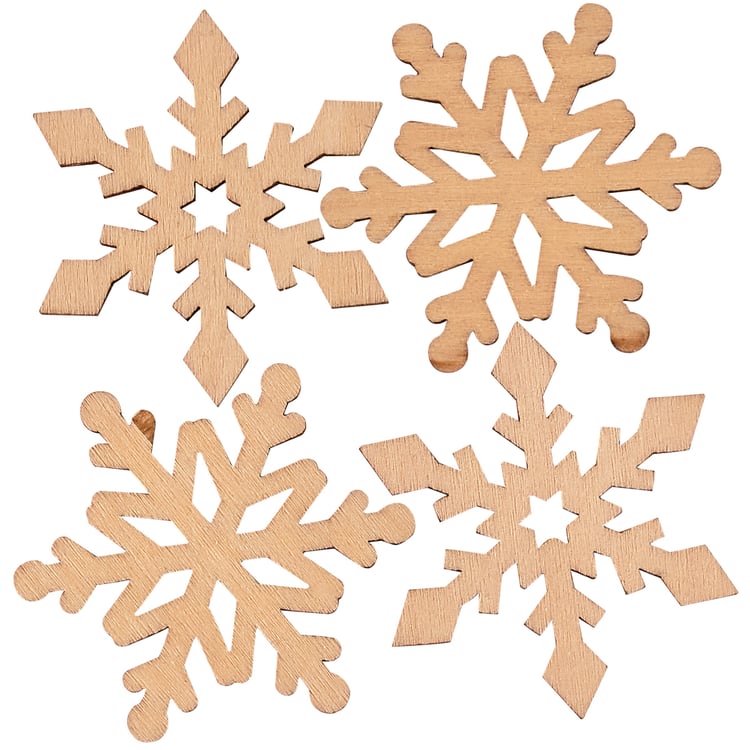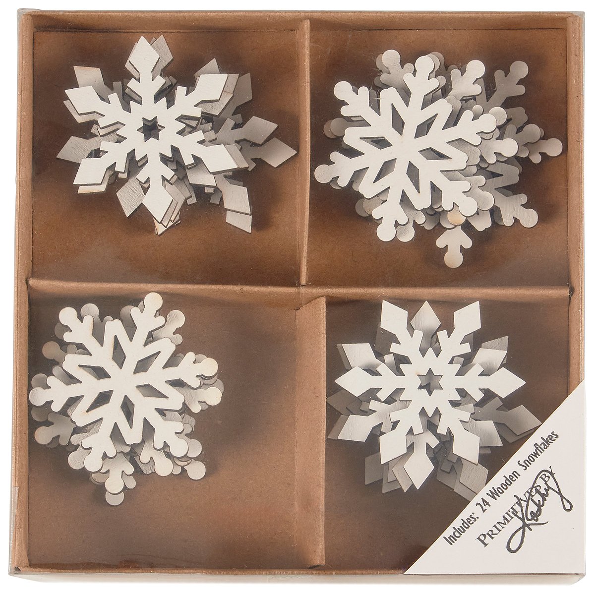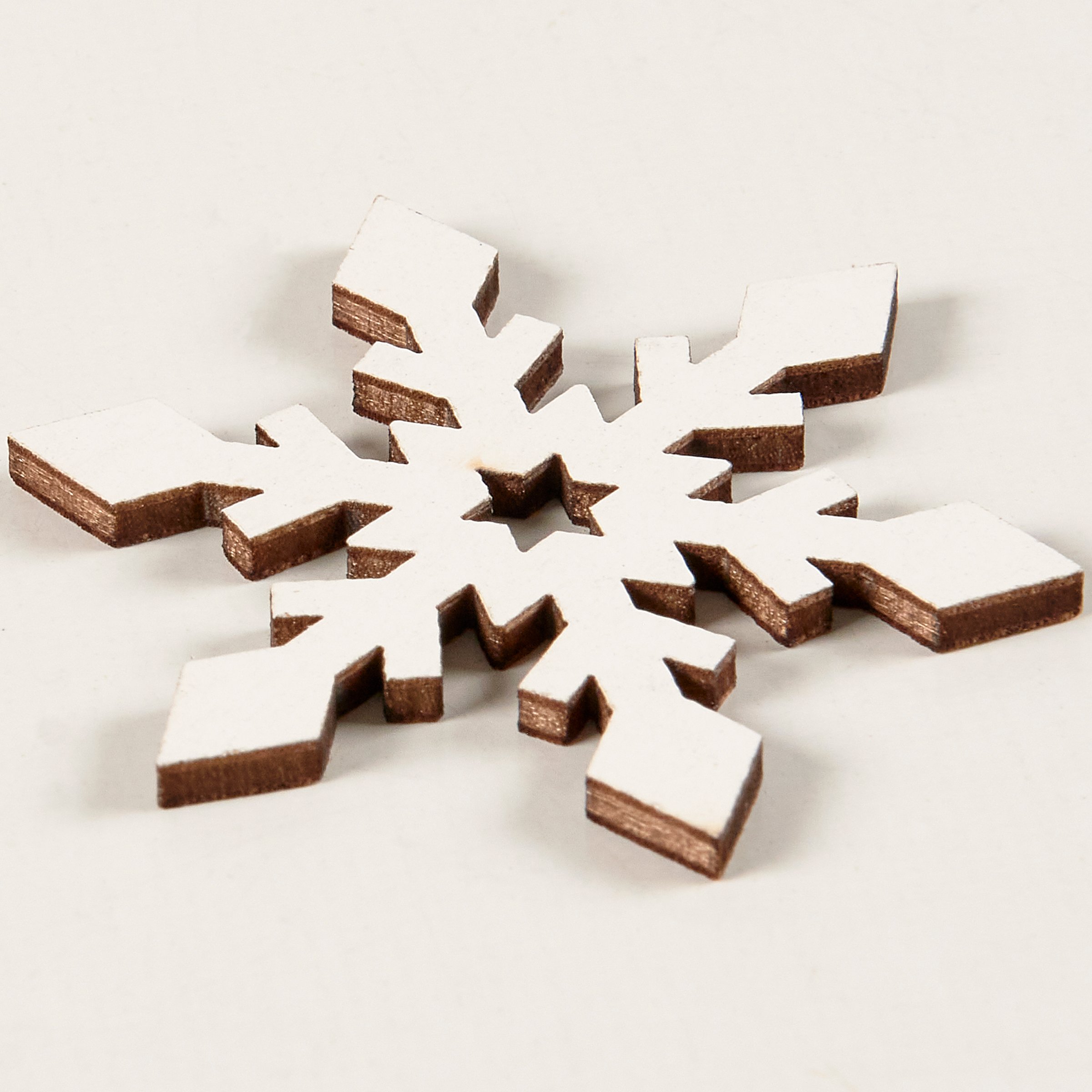 A set of wooden snowflakes from our Christmas Collection including 24 snowflakes. Seasonal snowflakes feature four different designs with a cream color design. Our Wooden Snowflake set is easy to display using the adhesive sticker on the back of each snowflake. Set comes packaged together in a paper box with acrylic lid to easily display each design. A set of winter-themed home accents perfect for seasonal display.