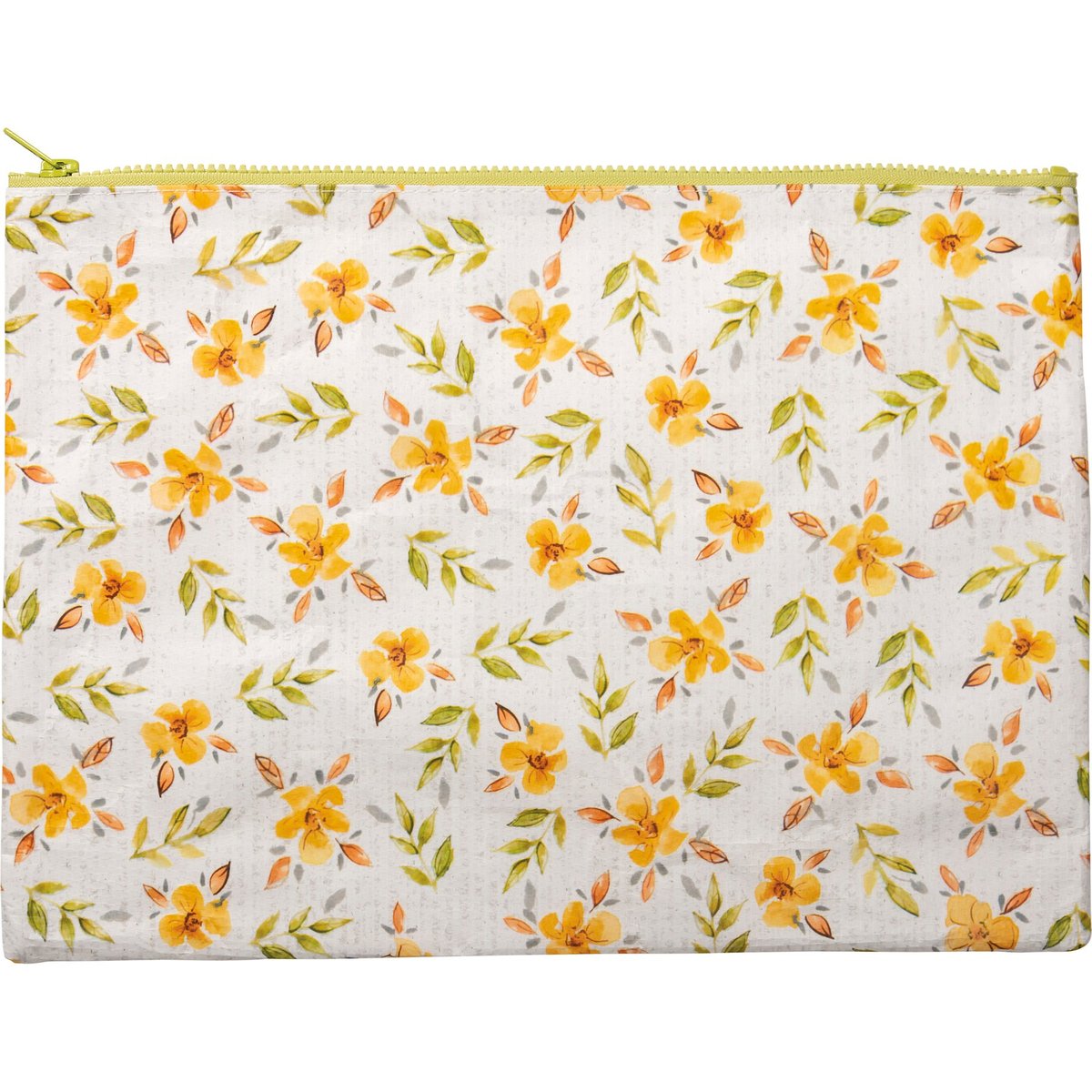 Made of post-consumer material, this double-sided zipper folder features a front bee illustration and "Kind" sentiment and back all-over floral design. Includes top zipper closure.