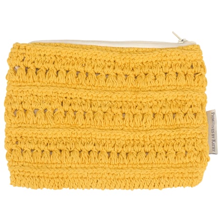A cotton pouch from our Cottagecore Collection features a saffron color and unique crochet style for the bag design as well as a zipper on top to secure items inside. Our Saffron Crochet zipper pouch includes a fully lined pouch perfect for storing everyday items when on the go. A stylish accessory great for gifting.