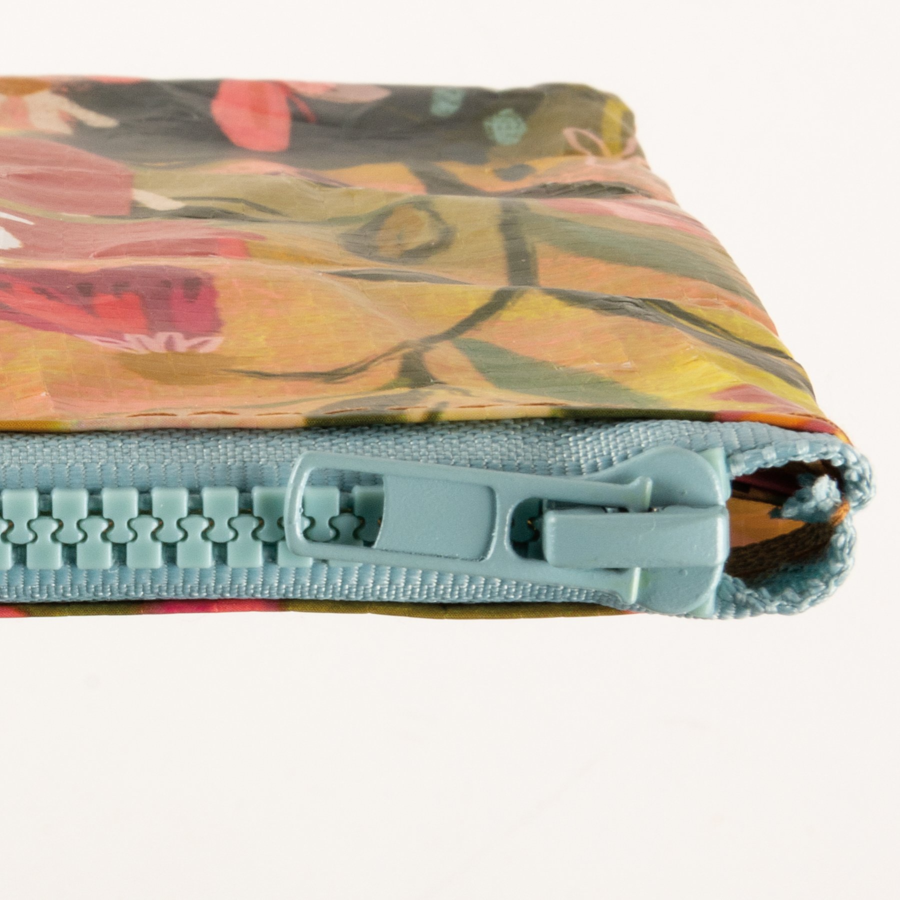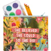 Made of post-consumer material, this double-sided zipper pouch features vibrant floral designs with "She Believed She Could So She Did" sentiment. Contains a top zip closure.