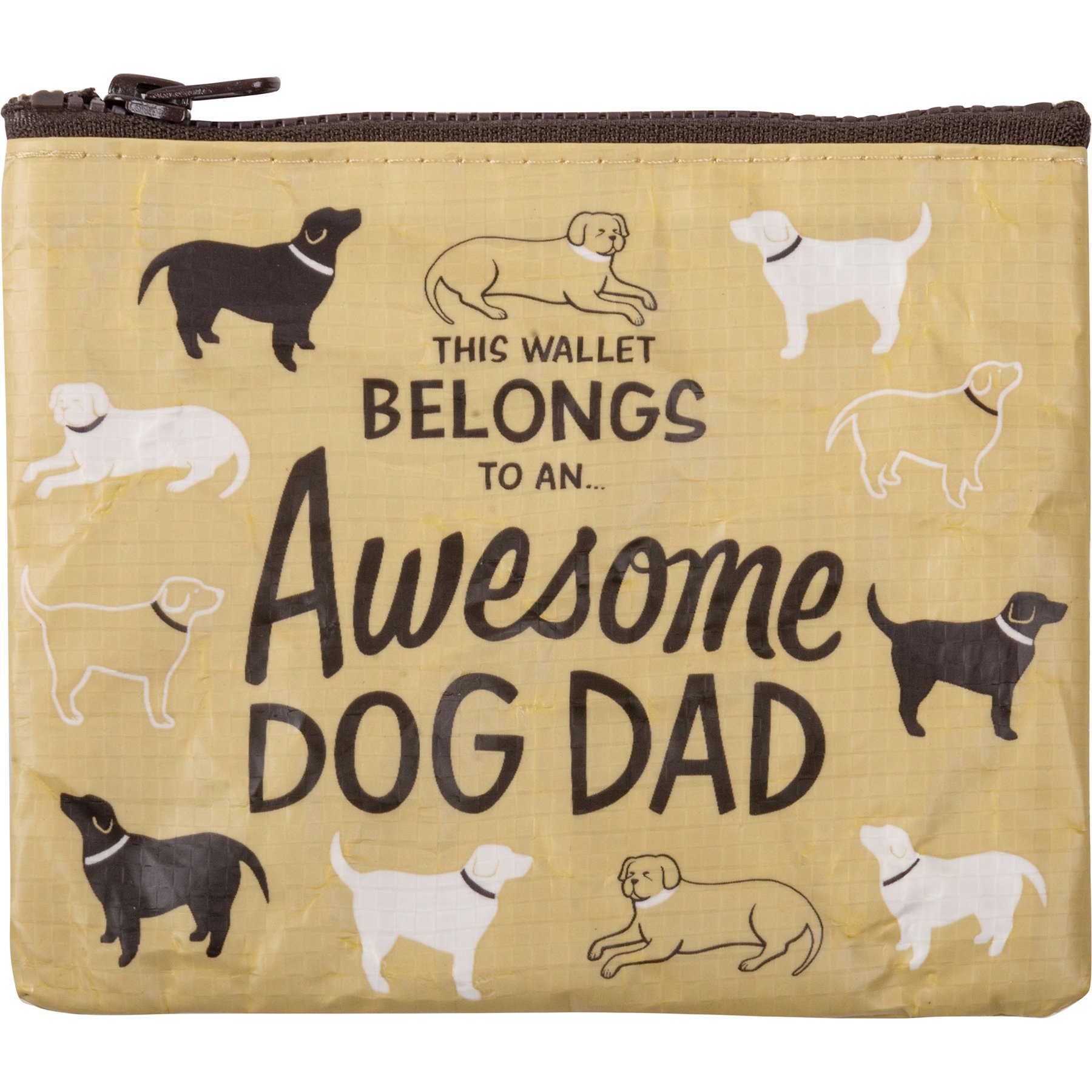 Made of post-consumer material, this double sided zipper wallet from our best-selling LOL Made You Smile Collection features all-over dog designs and "This Wallet Belongs To An . . . Awesome Dog Dad" sentiment. Our Awesome Dog Dad zipper wallet contains a top zip closure and is great for gifting!