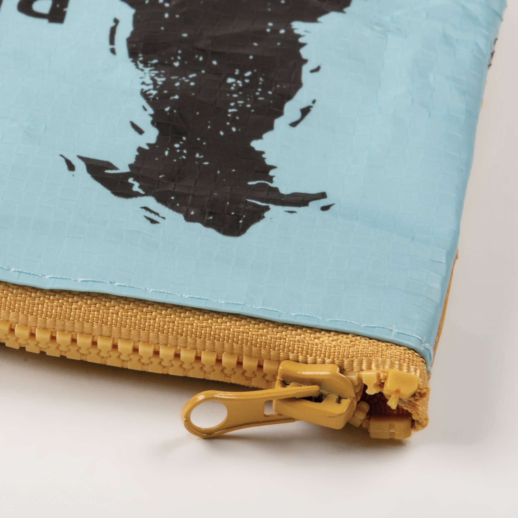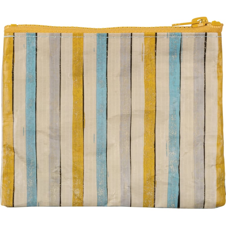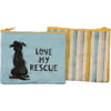 A double-sided zipper wallet from our Pet Collection displaying a cute design of a sitting dog wagging its tail replicated from original block print style art with a heartwarming pet inspired sentiment that reads "Love My Rescue." Colorful design features coordinating stripe pattern on the back. Rescue dog wallet includes a top zipper closure in coordinating yellow color for easily securing items inside. Our Love My Rescue zipper wallet is made from eco-friendly post-consumer material and is perfectly sized to hold daily on the go items. Accessories pictured not included. A lovely pet-themed everyday accessory perfect for on the go organization.