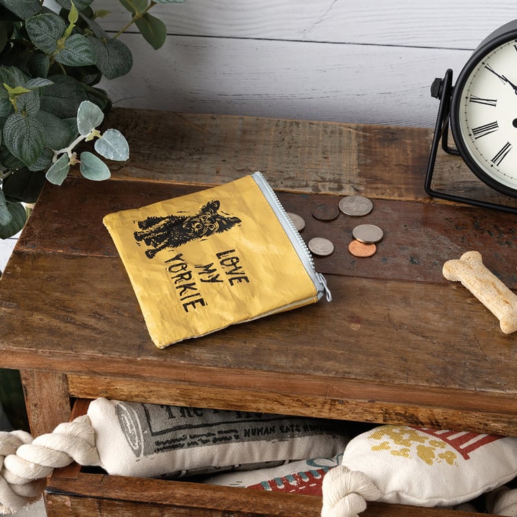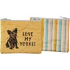 Made of post-consumer material, this double-sided zipper wallet from our Pet Collection features a block print yorkie design with "Love My Yorkie" sentiment on front. Reverse side of the Love My Yorkie zipper wallet features coordinating stripe design.